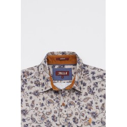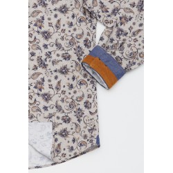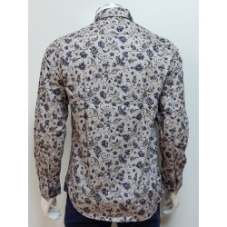 Chemise manches longues en popeline imprimée avec des motifs chevrons et cachemire. Coupe regular fit, bas liquette, col souple. Liseré de couleur au pied de col et au poignet. Logo brodé sur le coeur. Pour une taille M, largeur poitrine 54 cm.100% coton.