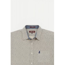 Chemise manches courtes en coton motif points. Coupe droite, bas liquette, col souple. Logo brodé au niveau du coeur. Revers manches. Bande de col en tissu contrasté. Logo brodé sur le coeur.