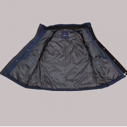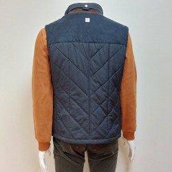 Gilet, col montant, coupe droite, coloris uni, matelassé avec 2 poches biais boutons, 1 poche poitrine zip, 1 poche intérieure zip biais, 1 poche intérieure pression. Bande velours intérieur col et bande de boutonnage.