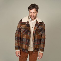 Blouson carreaux col sherpa :
